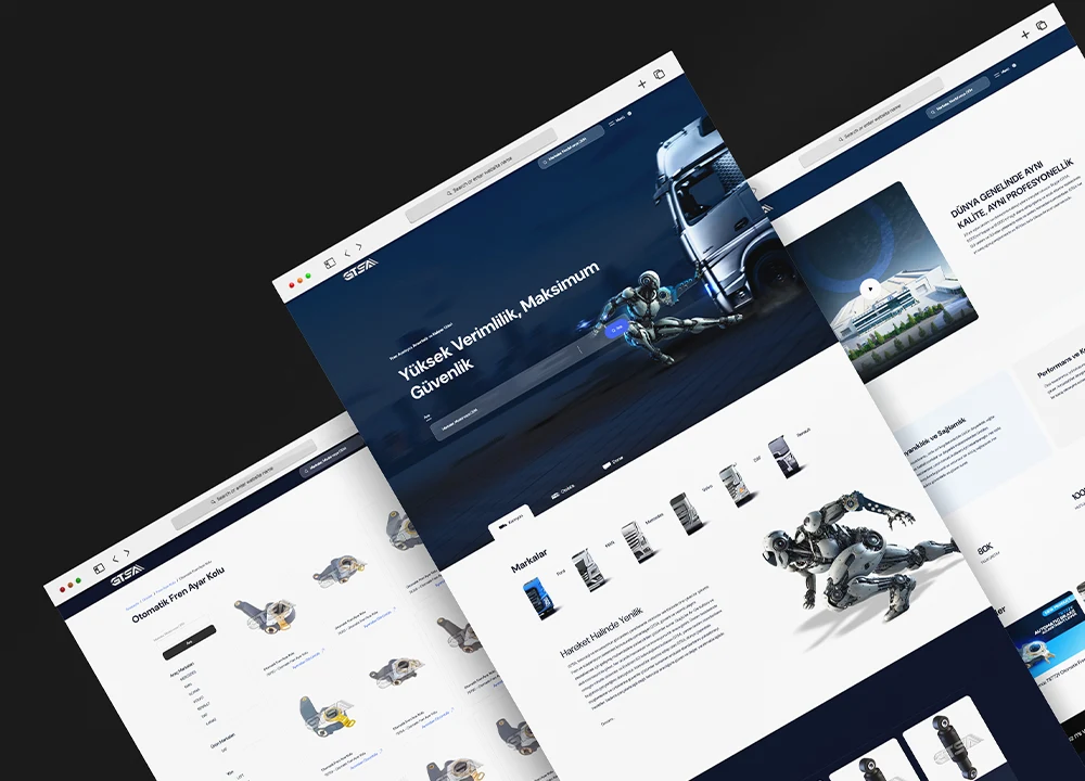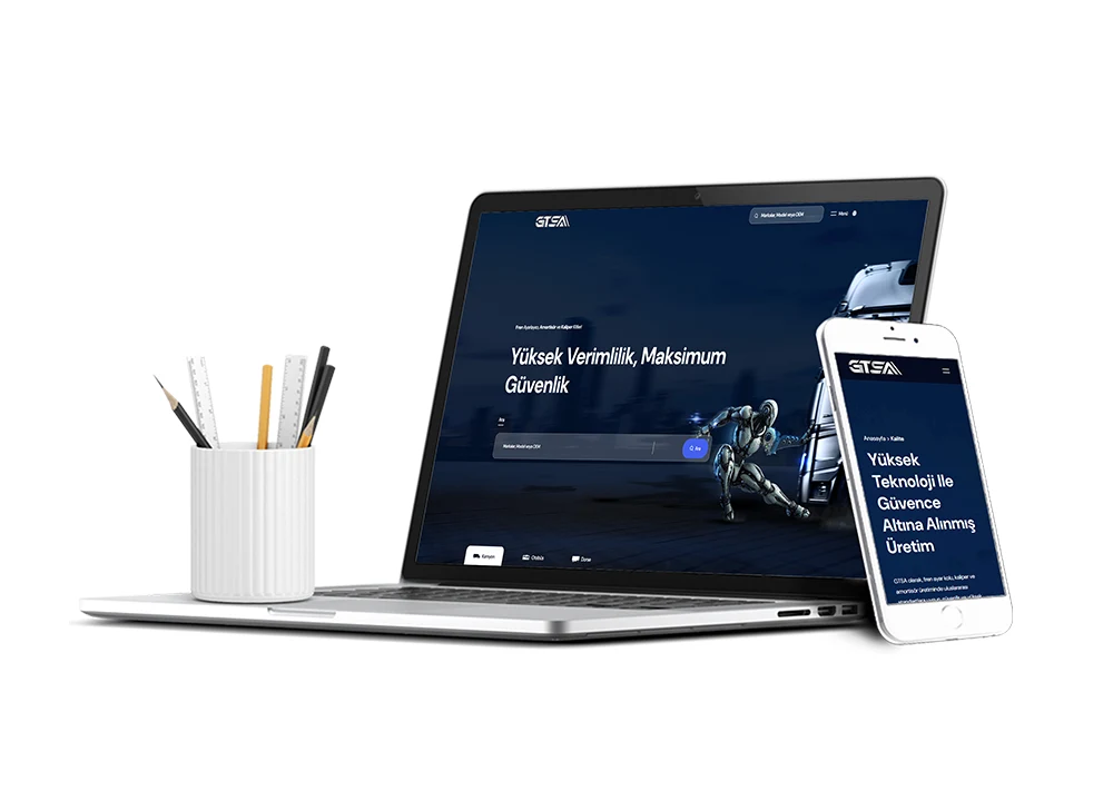 Le site GTSA créé par MEGATON AJANS met en avant les pièces détachées pour camions, amortisseurs et réglages de frein avec un design moderne et professionnel.